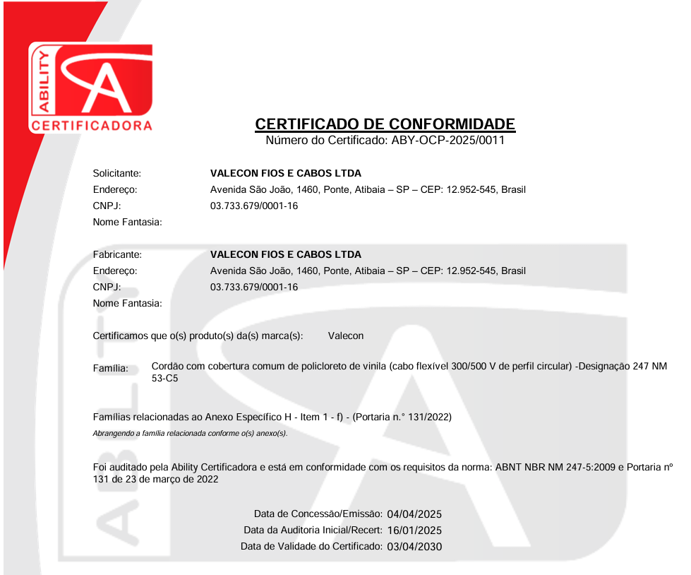 Desde 2000 no mercado, a Valecon conta hoje com uma planta fabril moderna e com tecnologia de ponta.